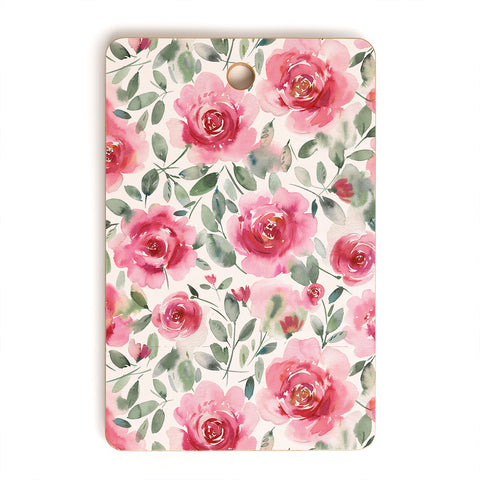 Ninola Design Botanic Retreat Tropical Leaves Flowers Pink Green Cutting Board Rectangle