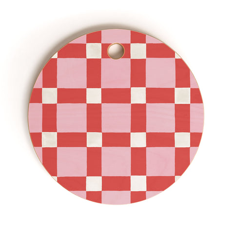 Ninola Design Checkerboard Watercolor Colorful Squares Mosaic Cutting Board Round