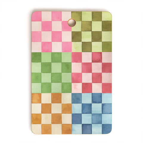 Ninola Design Checkerboard Watercolor Colorful Squares Mosaic Cutting Board Rectangle