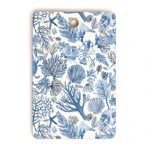 Ninola Design Coral Reef Crab Lobster Marine Coastal Blue Cutting Board Rectangle