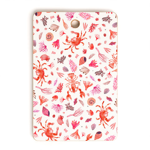 Ninola Design Crabs Lobsters Coastal Coral Reef Red Cutting Board Rectangle
