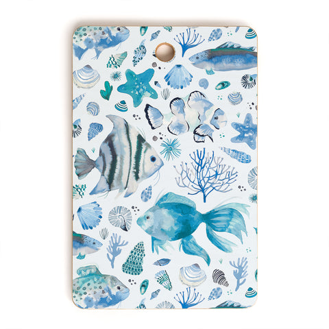 Ninola Design Fishes Shells Sea Horse Ocean Coastal Marine Blue Cutting Board Rectangle
