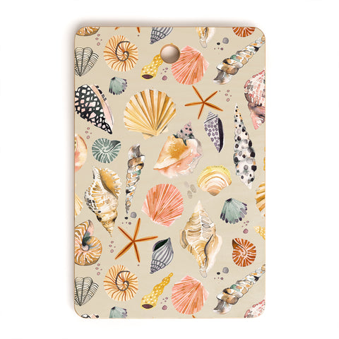 Ninola Design Sea Shells Ocean Marine Coastal Sand Cutting Board Rectangle