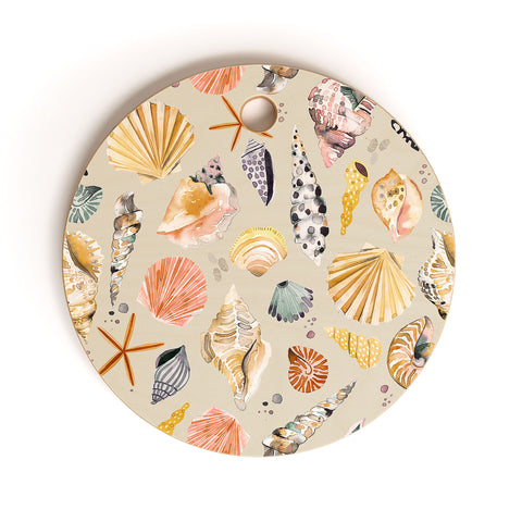 Ninola Design Sea Shells Ocean Marine Coastal Sand Cutting Board Round