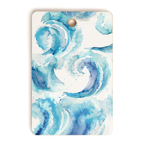 Ninola Design Sea Waves Blue Coastal Marine Watercolor Cutting Board Rectangle