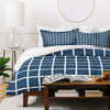 Avenie Grid Pattern Navy Duvet Cover