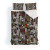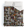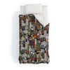 Sharon Turner wooden buildings teal Duvet Cover