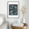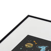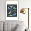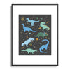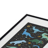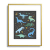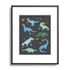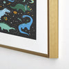 Lathe & Quill Dinosaurs in Space in Blue Metal Framed Art Print