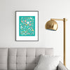 Lathe & Quill Dinosaurs Unicorns on Teal Metal Framed Art Print