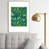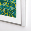 monstera leaves in teal