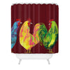 Clara Nilles Rainbow Roosters On Sangria Shower Curtain