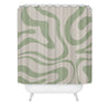 Kierkegaard Design Studio Modern Liquid Swirl Light Sage and Cream Shower Curtain