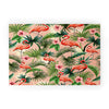 ChrissyInk Pink flamingoes tropical palm Welcome Mat