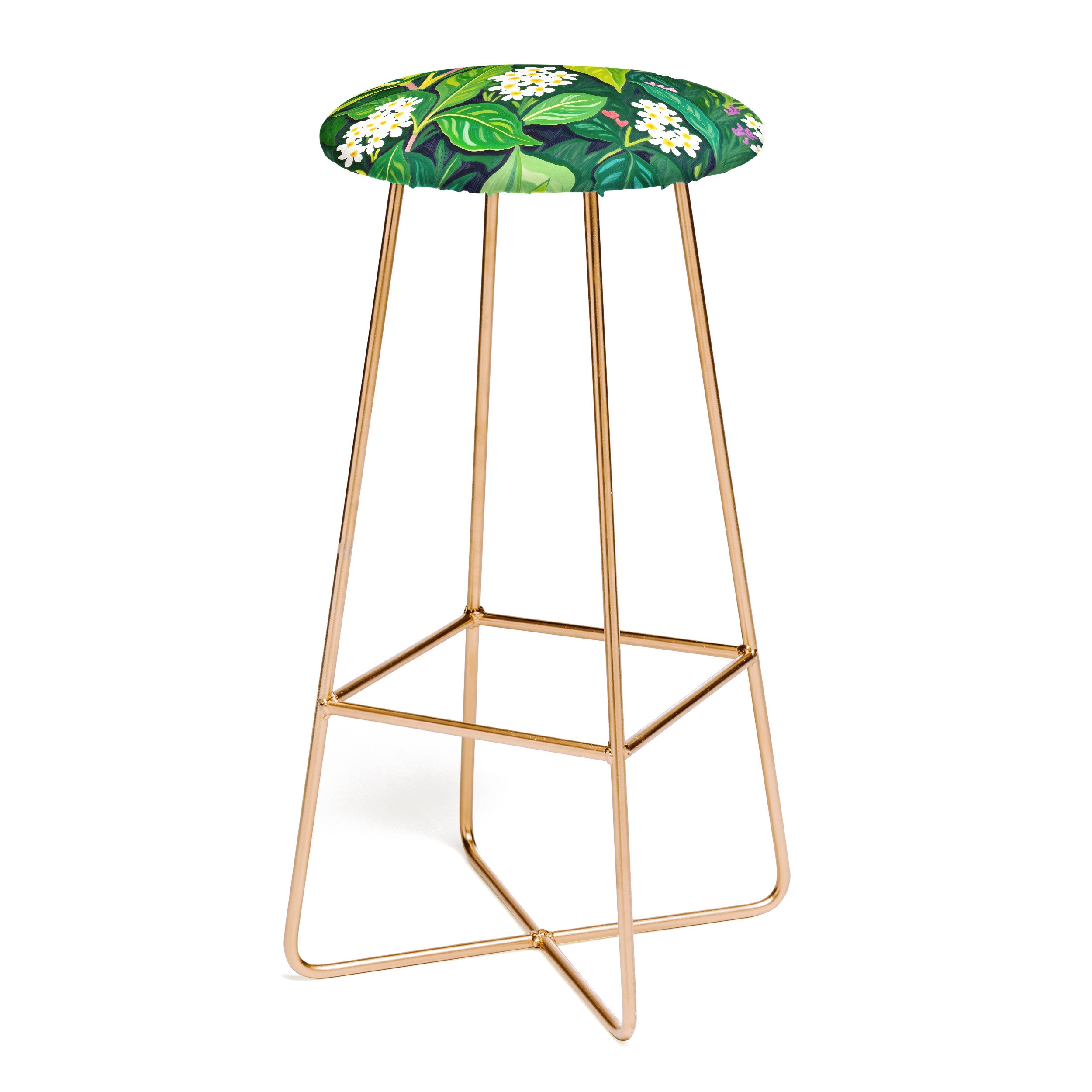 Saddle up, partner. The Deny Designs bar stool is the space-conscious and design-forward way to add seating to any space. Sleek, gently curved steel aston legs (available in black or gold) combine with the faux-leather upholstery for a modern yet unassuming stool. They feature a conveniently placed foot rest so your legs aren't left dangling, plus, you can select from our curated array of designs to match whatever your taste may be. And the best part? Every purchase pays the artist who designed it—supporting creativity worldwide.