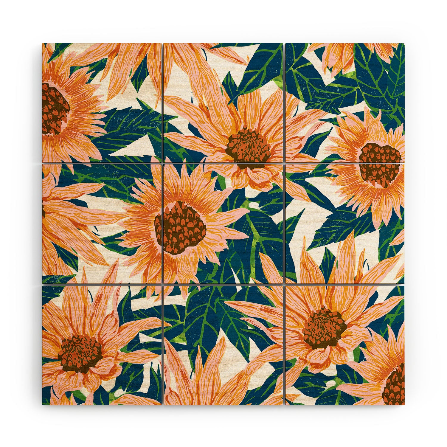 83 Oranges Blush Sunflowers Wood Wall Mural