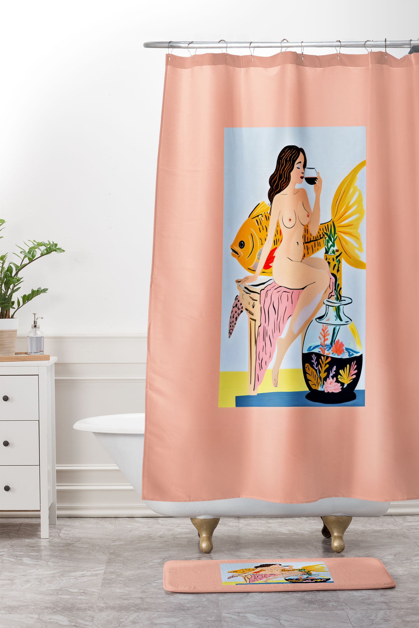 83 Oranges Fishy Shananigans Art Shower Curtain And Mat