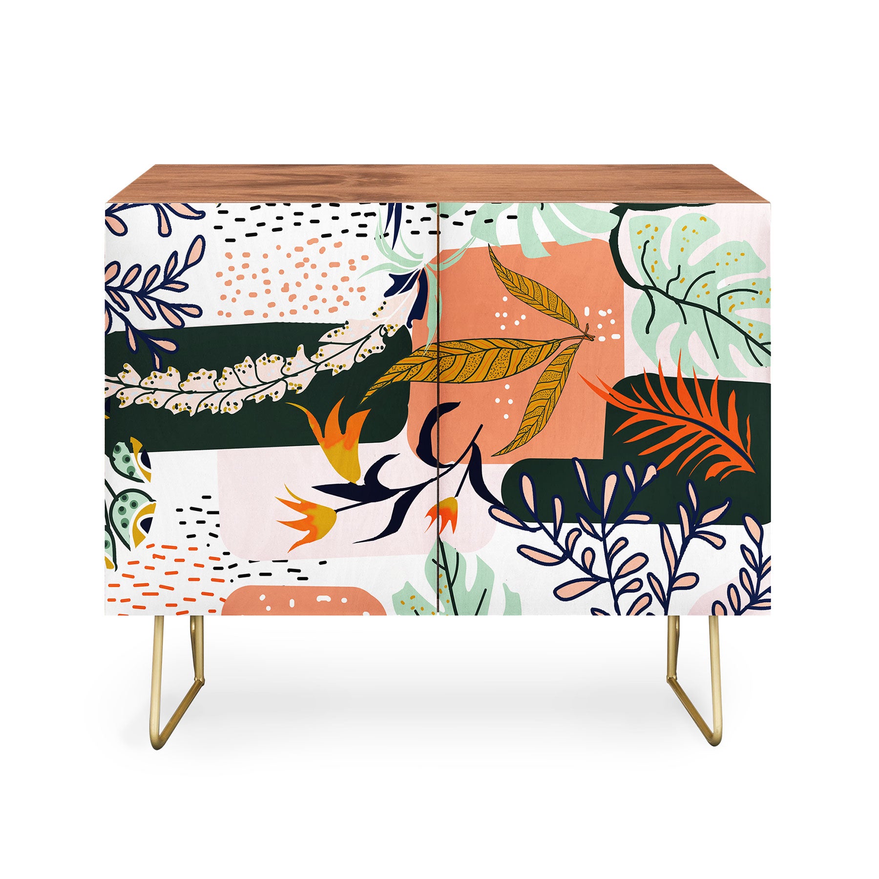 The Deny Designs credenza features crisp mid-century modern styling with an understated Baltic Birch cabinet and sleek, curved steel aston legs. Select from our array of curated designs to feature on the credenza doors and blend this versatile furniture staple into any decor. It can function as an office cabinet, entertainment unit or even a bar cart. It's available in either a warm, refreshingly natural finish or a premium, rich walnut veneer—allowing for a variety of design combinations. And the best part? Every purchase pays the artist who designed it—supporting creativity worldwide.