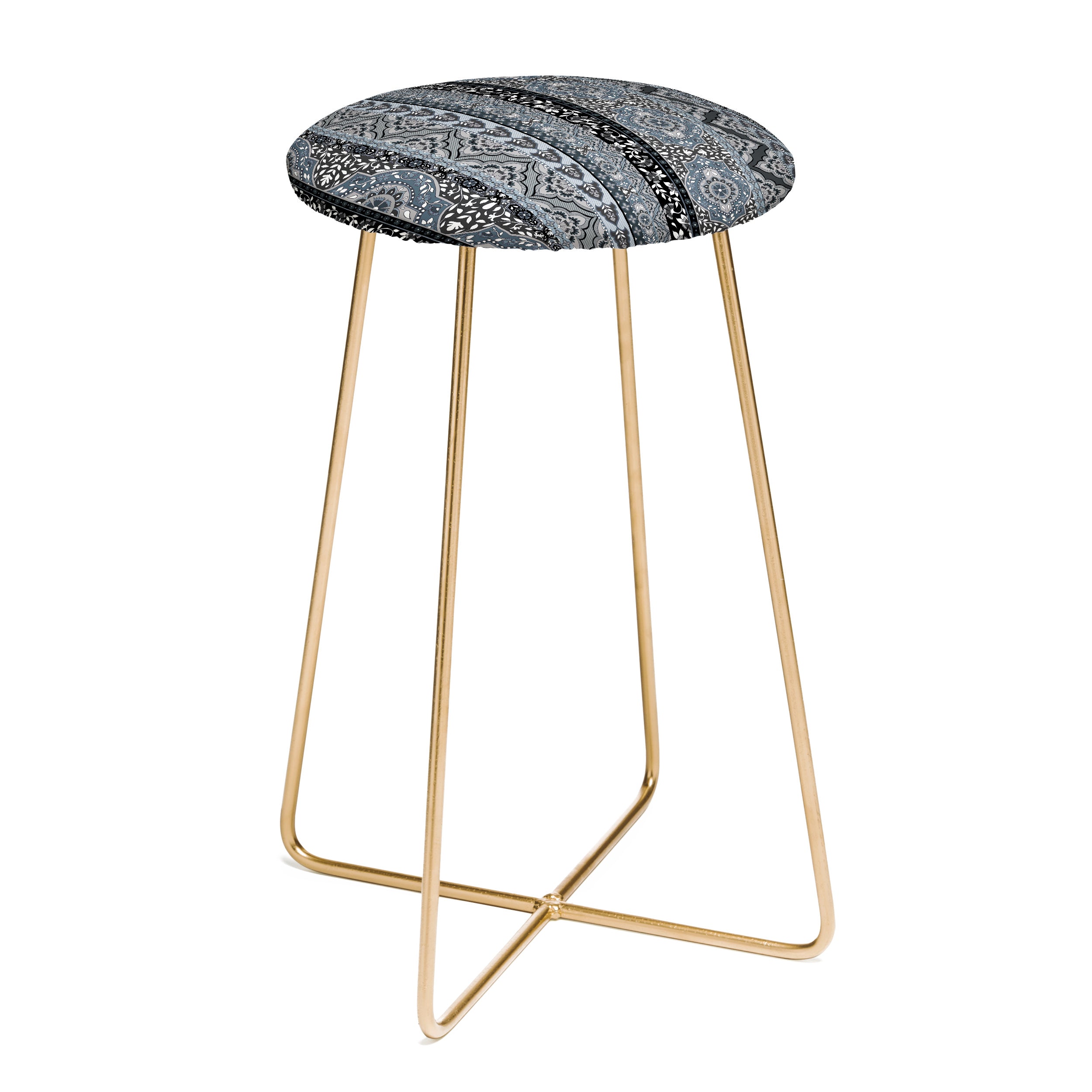 Saddle up, (little) partner. The Deny Designs counter stool uses all the space-conscious, design-forward styling of the bar stool, but with a slightly shorter frame. Sleek, gently curved steel aston legs (available in black or gold) combine with the faux-leather upholstery for a modern yet unassuming stool. Select from our curated array of designs to match whatever your taste may be. And the best part? Every purchase pays the artist who designed it—supporting creativity worldwide.