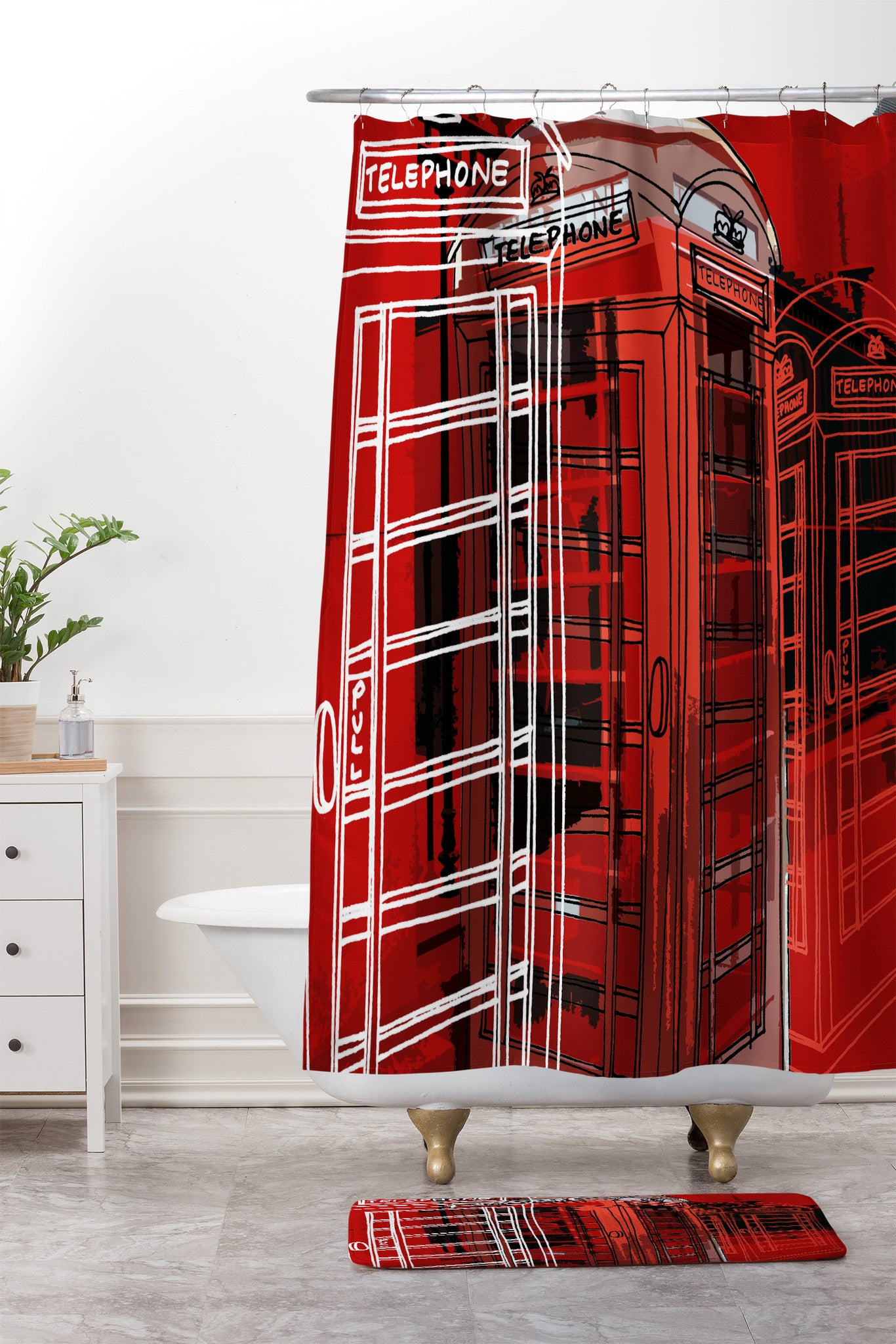 Aimee St Hill Phone Box Shower Curtain And Mat