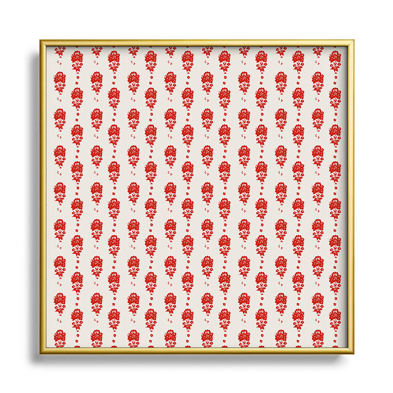alison janssen Red Floral Block Print Square Metal Framed Art Print
