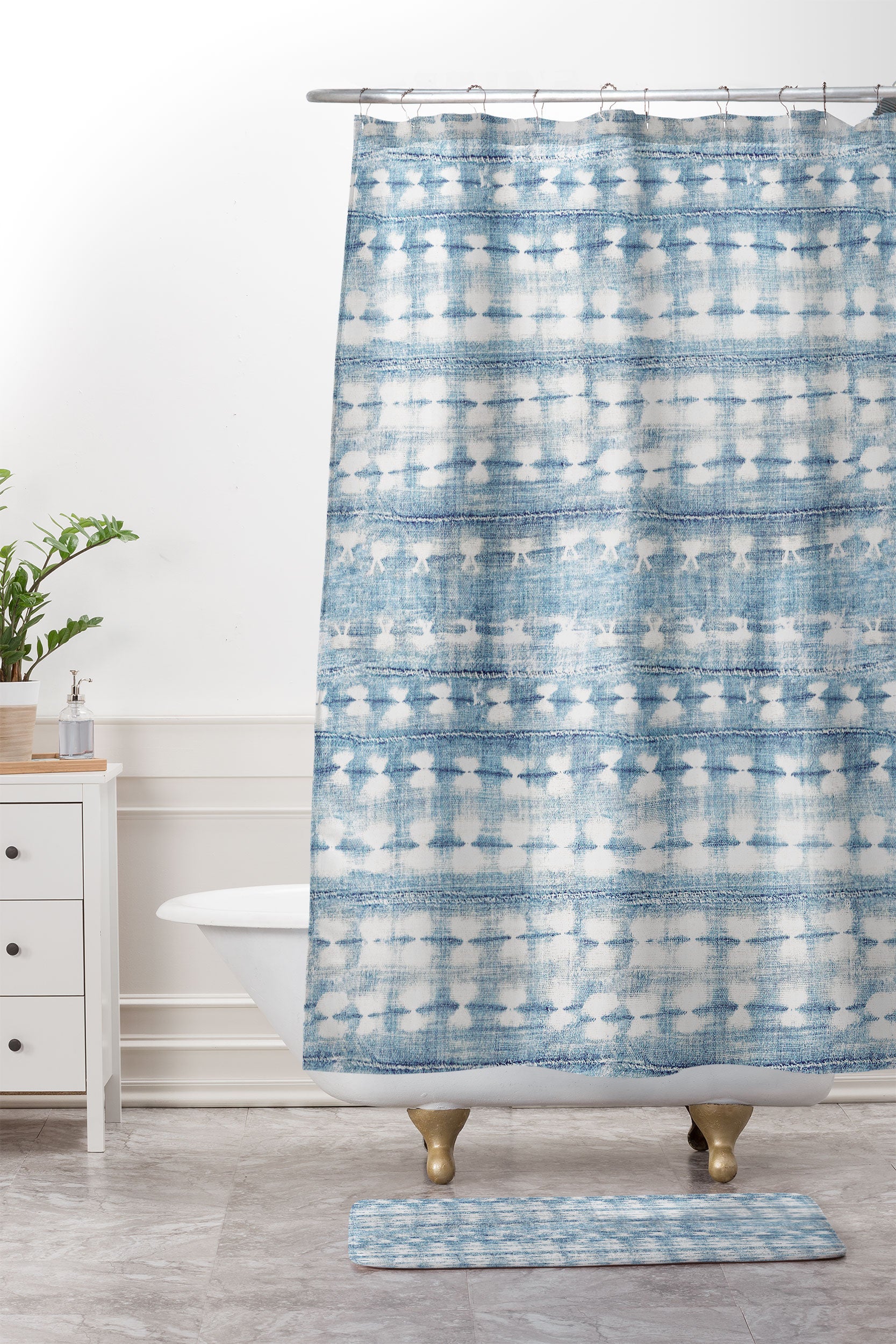 alison janssen Rustic Indigo Shower Curtain And Mat