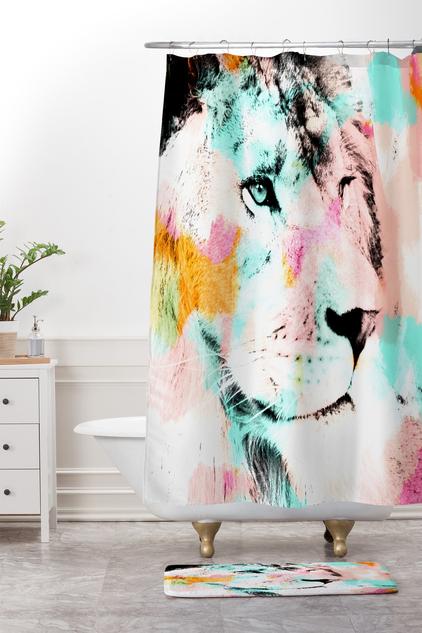 Allyson Johnson Abstract Lion 2 Shower Curtain And Mat
