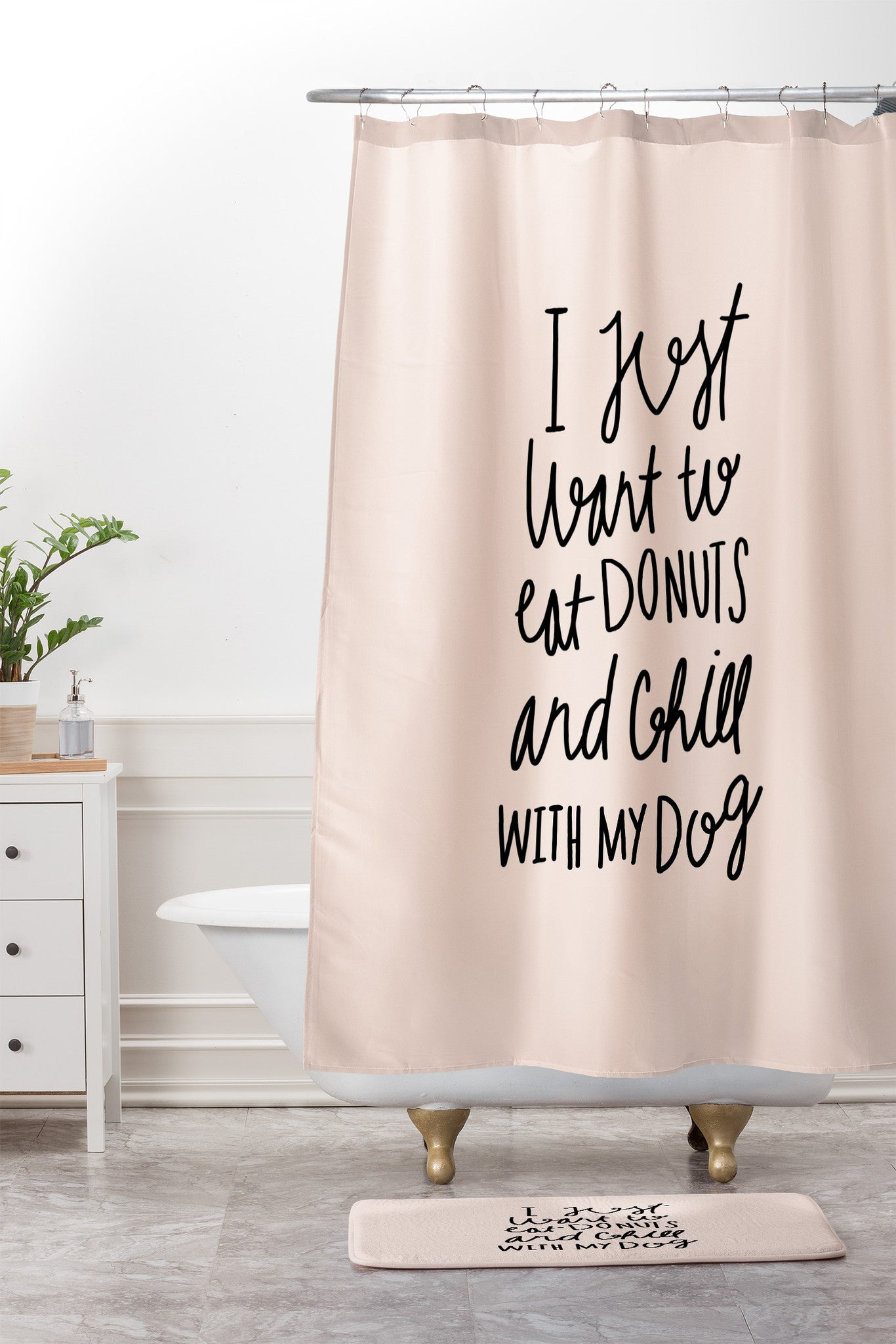 Allyson Johnson I just want to eat donuts and chill with my dog Shower Curtain And Mat