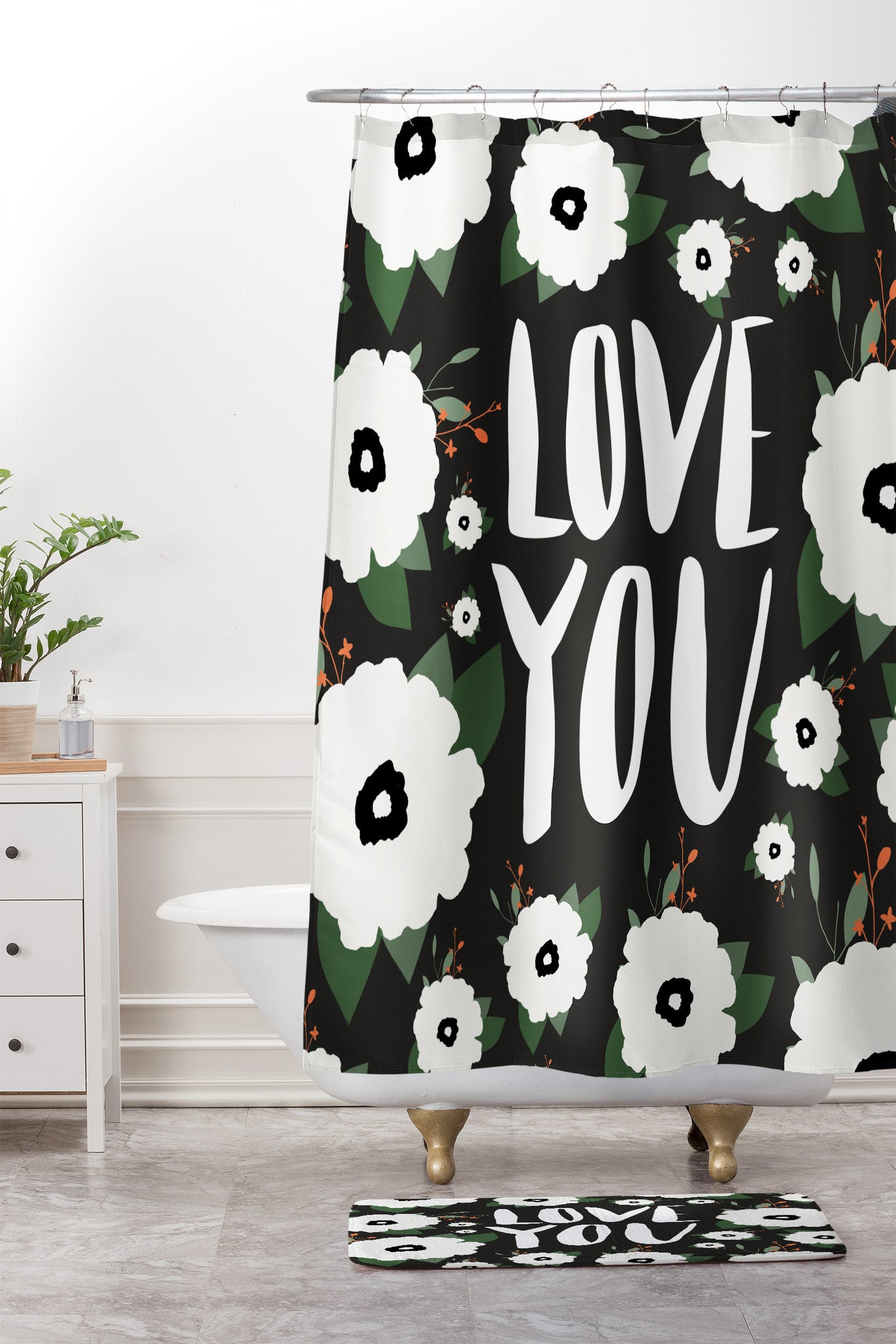 Allyson Johnson Love you floral Shower Curtain And Mat