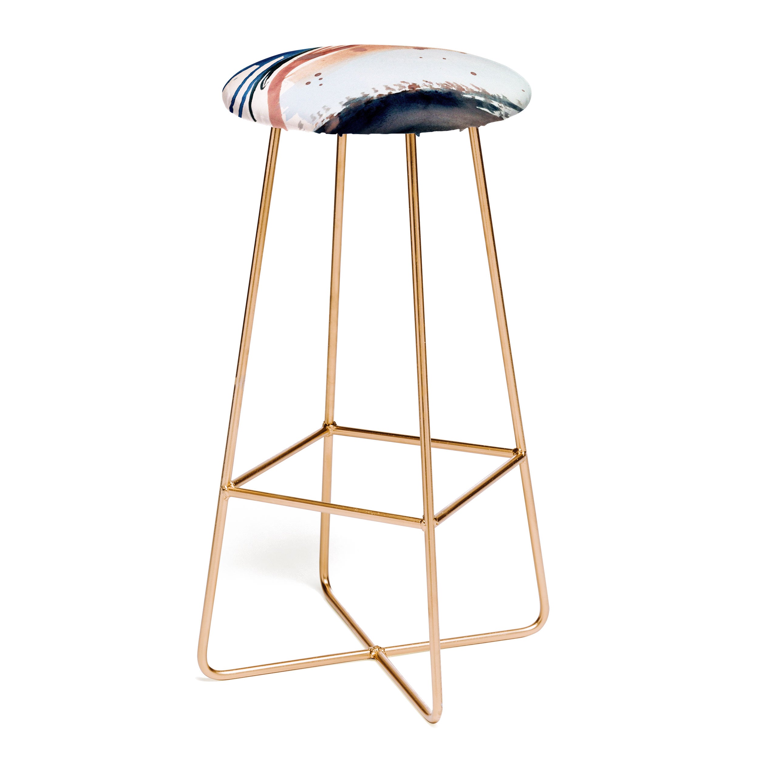 Saddle up, partner. The Deny Designs bar stool is the space-conscious and design-forward way to add seating to any space. Sleek, gently curved steel aston legs (available in black or gold) combine with the faux-leather upholstery for a modern yet unassuming stool. They feature a conveniently placed foot rest so your legs aren't left dangling, plus, you can select from our curated array of designs to match whatever your taste may be. And the best part? Every purchase pays the artist who designed it—supporting creativity worldwide.