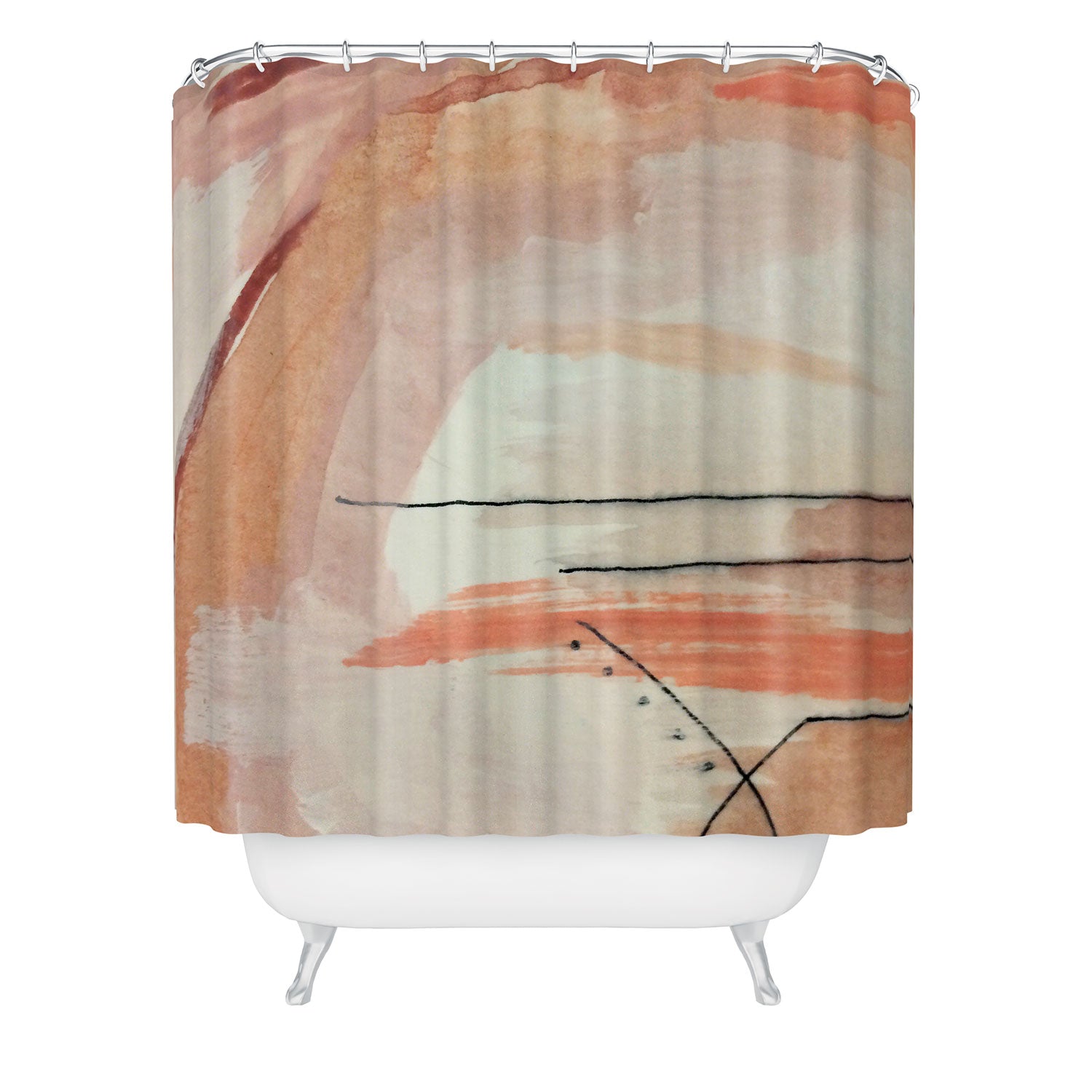 Set the stage. The Deny Designs shower curtain is crafted from 100% woven polyester and makes the perfect backdrop for whatever your bathroom decor may be. Adding some design to your shower curtains is a great way to make a statement in a room known for presenting plenty of design challenges. The buttonhole openings along the top means that you're free to use any curtain rings or hooks you please. And the best part? Every purchase pays the artist who designed it—supporting creativity worldwide.