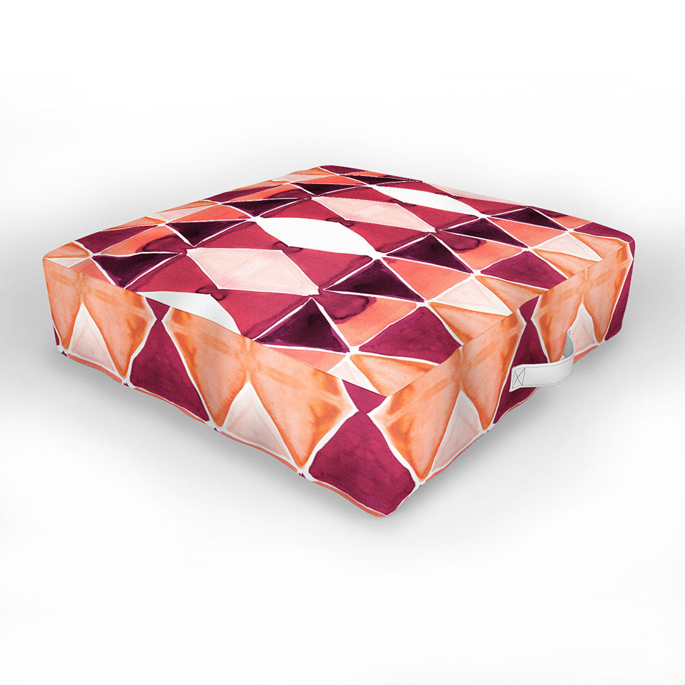 Amy Sia Art Deco Triangle Orange Outdoor Floor Cushion