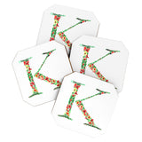 Amy Sia Floral Monogram Letter K Coaster Set