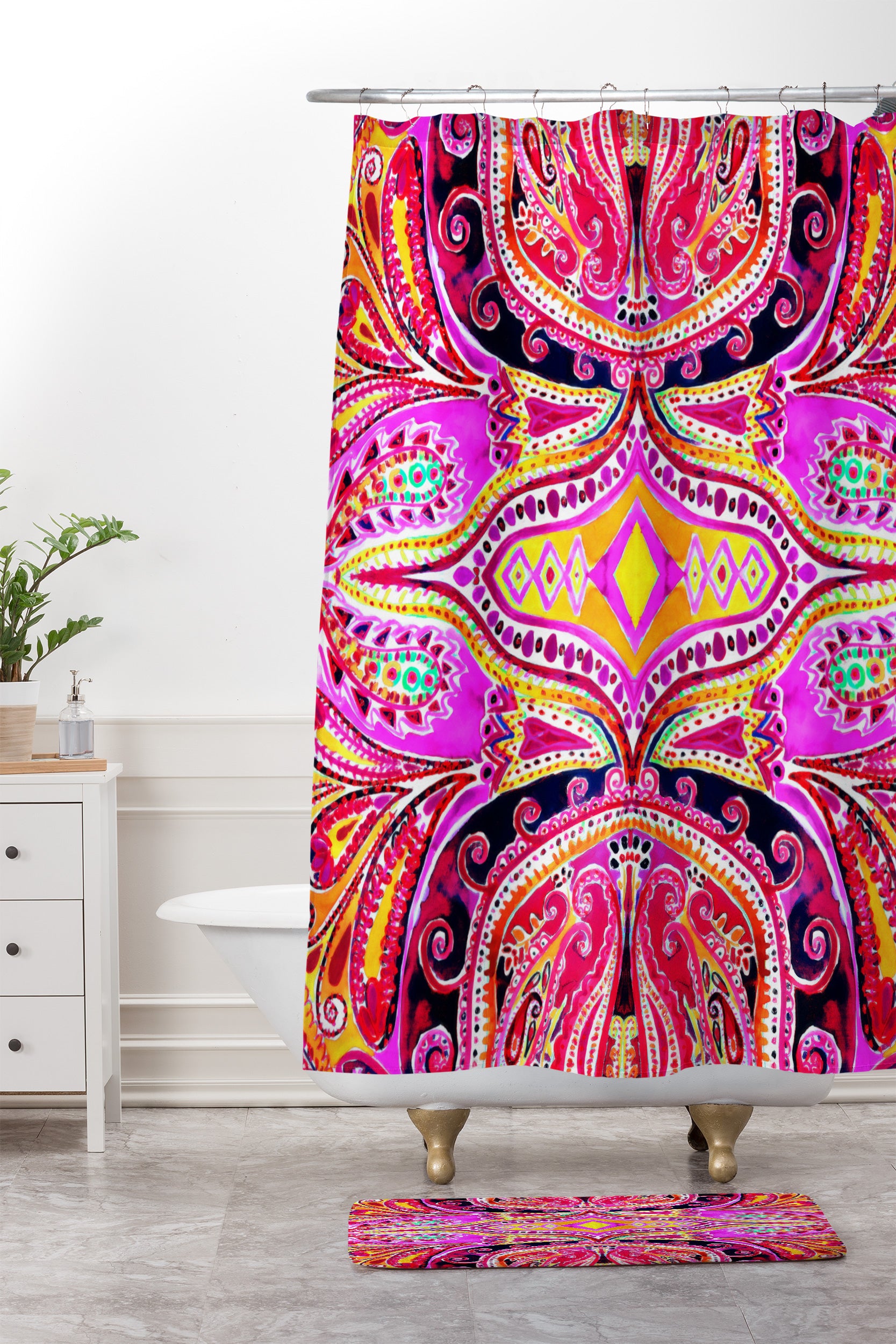 Amy Sia Paisley Hot Pink Shower Curtain And Mat