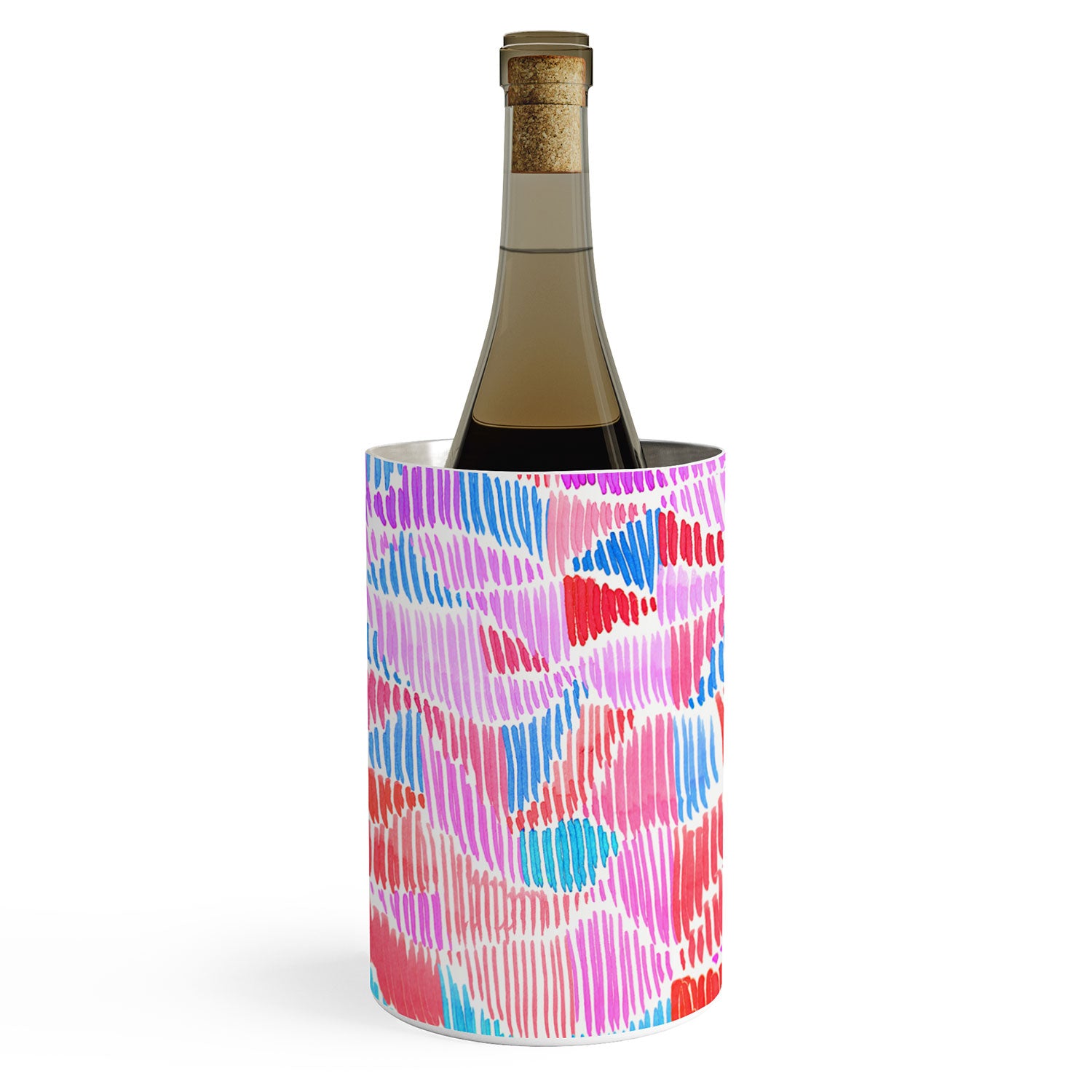Keep the party going. The Deny Designs 57 oz wine chiller keeps a wine bottle cool for hours—simply slide the bottle into the canister and enjoy. Made from dishwasher safe stainless steel, they feature a curated array of designs wrapped around the outside to match any aesthetic. And the best part? Every purchase pays the artist who designed it—supporting creativity worldwide.