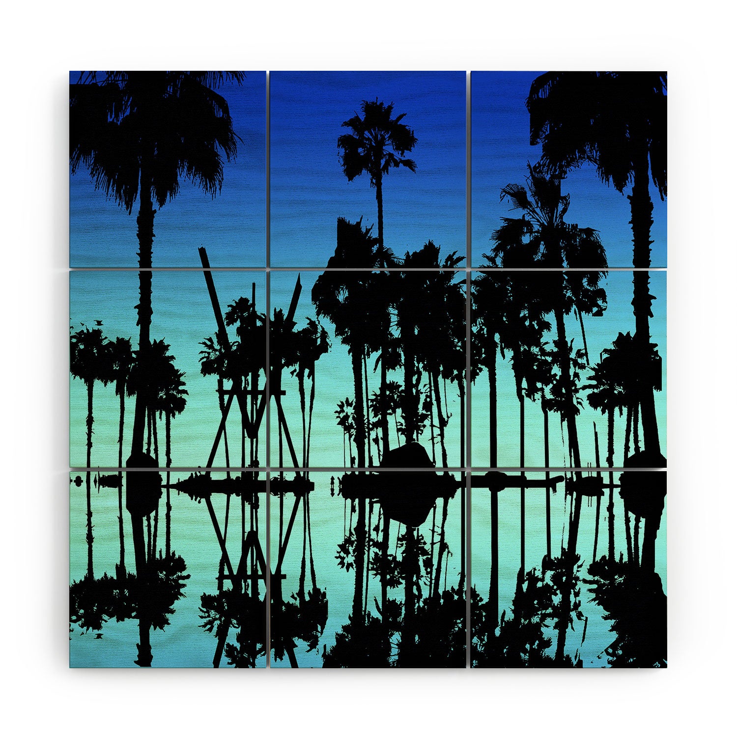 Amy Smith Blue Palms Wood Wall Mural