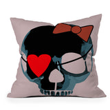 Amy Smith Blue Skull with Bow Outdoor Throw Pillow