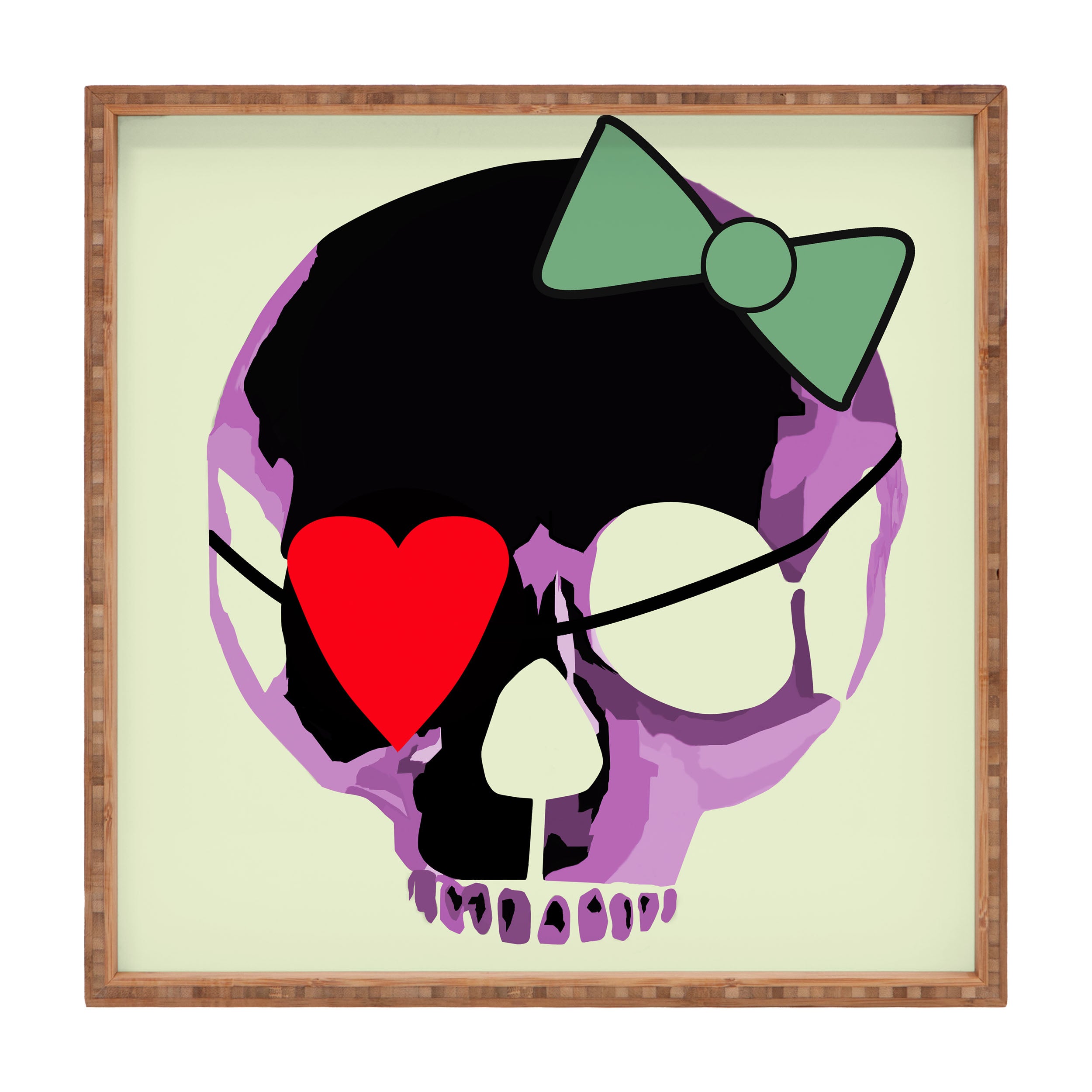 Amy Smith Pink Skull Heart With Bow Square Tray