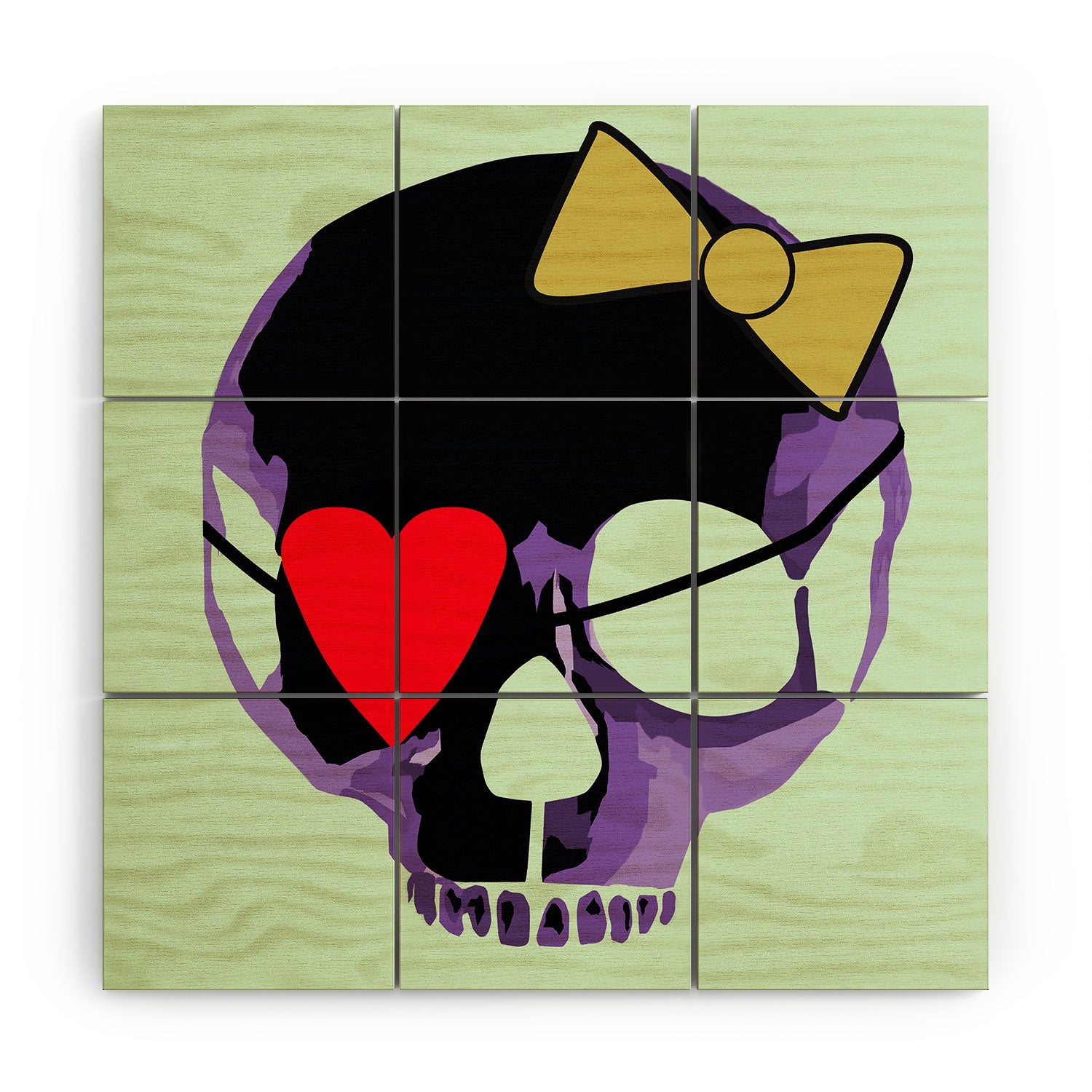 Amy Smith Purple Skull With Bow Wood Wall Mural