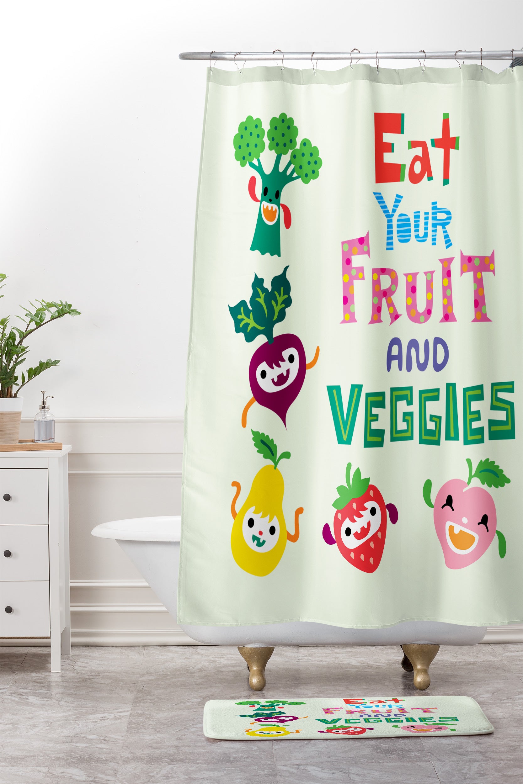 Andi Bird Eat Your Fruit and Veggies Shower Curtain And Mat