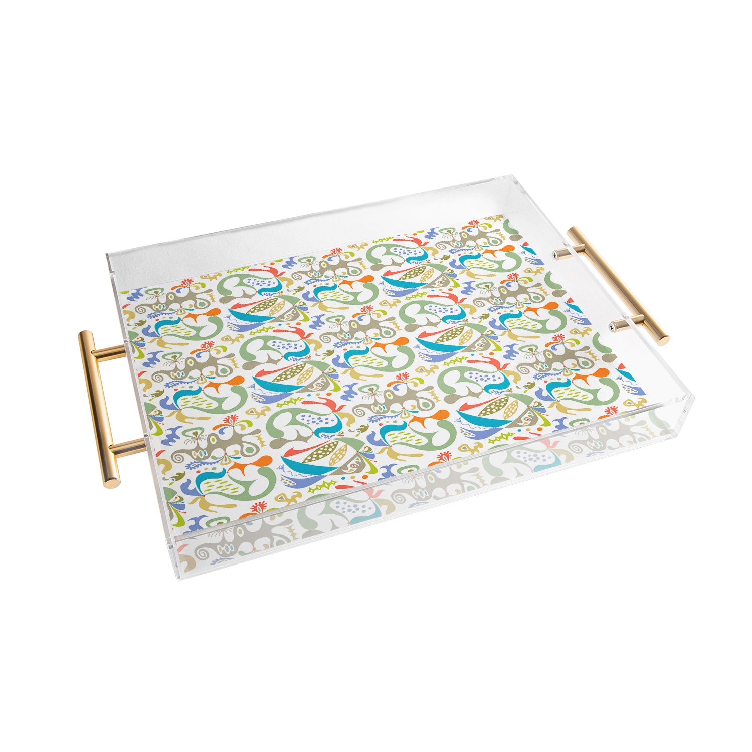 Tray chic. The Deny Designs acrylic trays come in a small and medium-size to accommodate all your countertop organizational needs. Featuring designs from our curated selection on the bottom panel, the acrylic trays can adapt to whatever decor style you love and the see-through side panels give them a modern flair. The medium-sized tray even comes with handles, allowing you to take it around the house for nail supplies or, dare we say, breakfast in bed! And the best part? Every purchase pays the artist who designed it—supporting creativity worldwide.