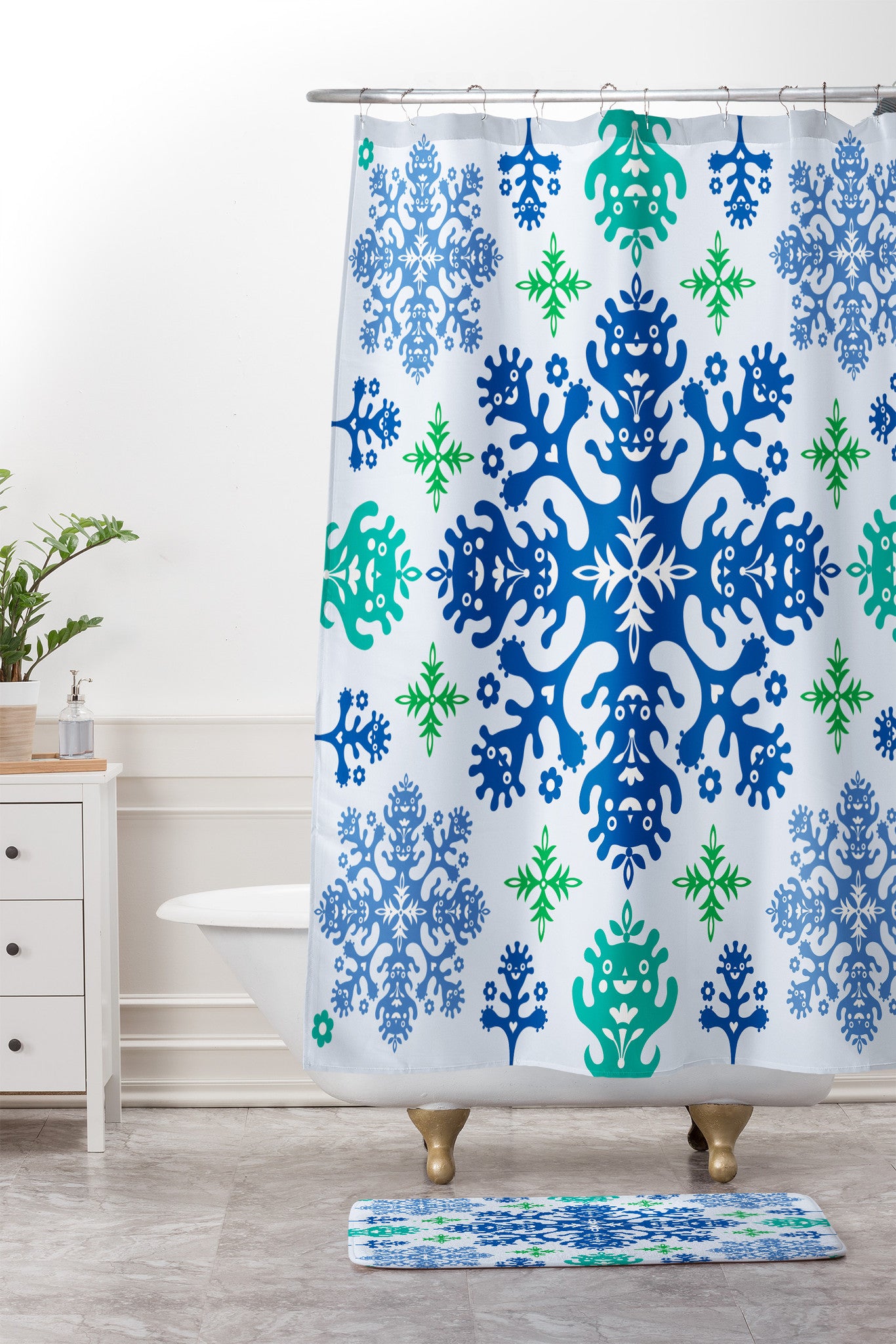 Andi Bird Monstrous Blue Shower Curtain And Mat