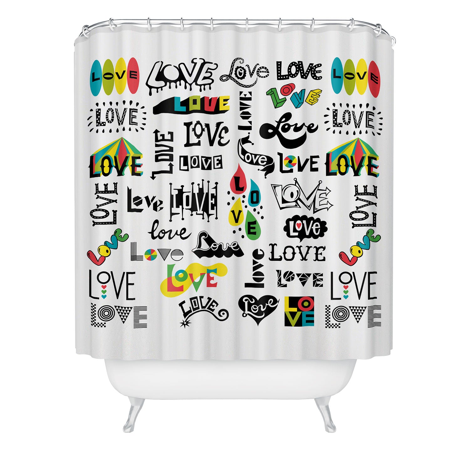 Set the stage. The Deny Designs shower curtain is crafted from 100% woven polyester and makes the perfect backdrop for whatever your bathroom decor may be. Adding some design to your shower curtains is a great way to make a statement in a room known for presenting plenty of design challenges. The buttonhole openings along the top means that you're free to use any curtain rings or hooks you please. And the best part? Every purchase pays the artist who designed it—supporting creativity worldwide.