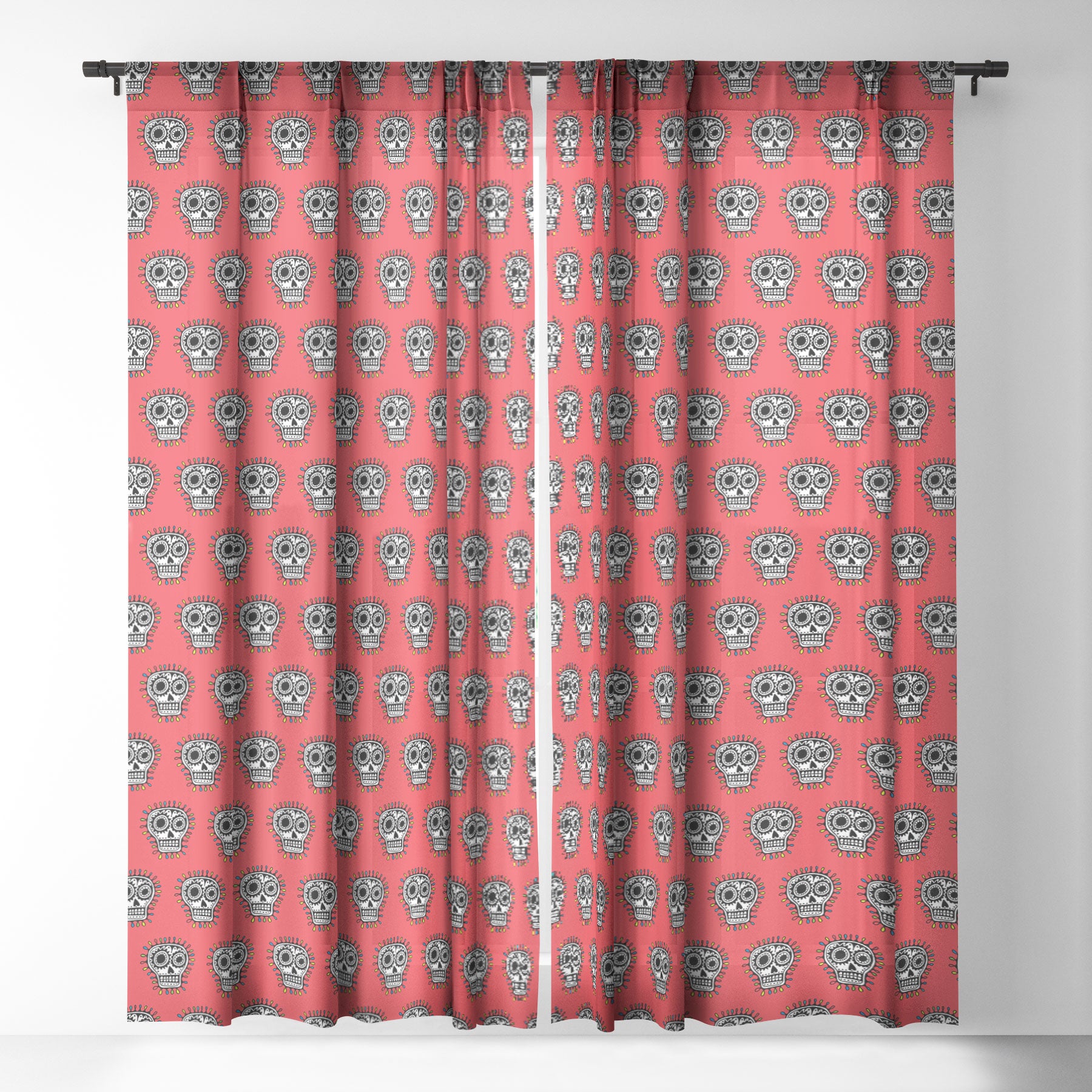 Andi Bird Sugar Skull Fun Red Sheer Window Curtain