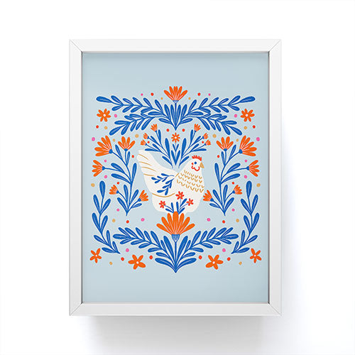 Angela Minca Blooming chicken blue Framed Mini Art Print