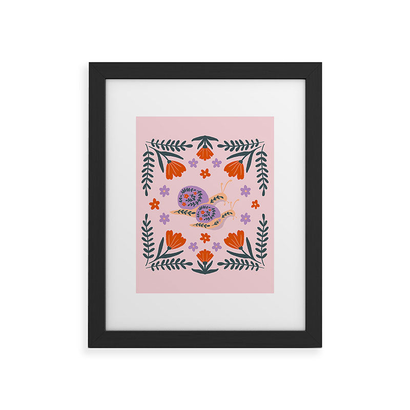 Angela Minca Snails and flowers Framed Art Print