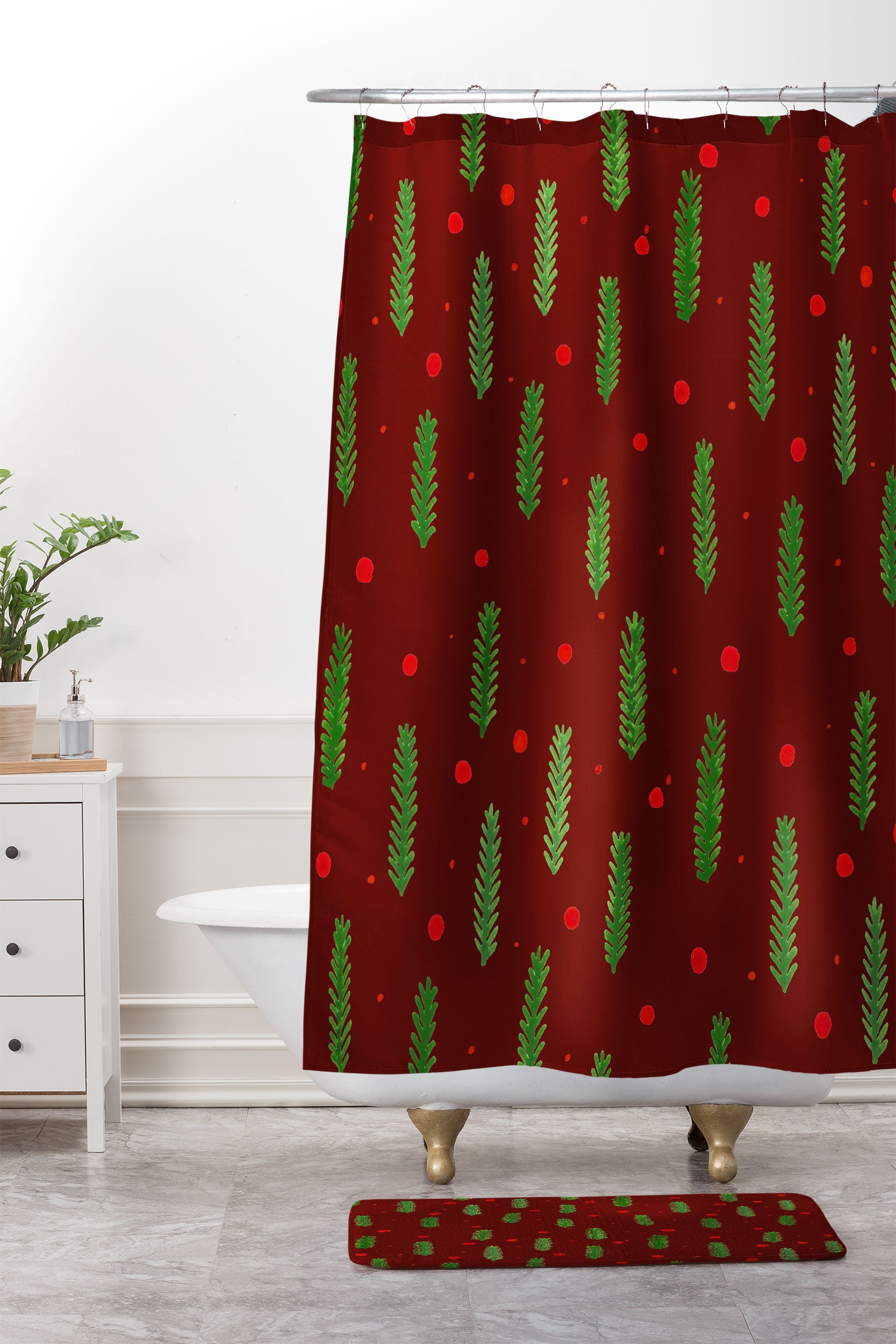 Angela Minca Xmas branches and berries 2 Shower Curtain And Mat