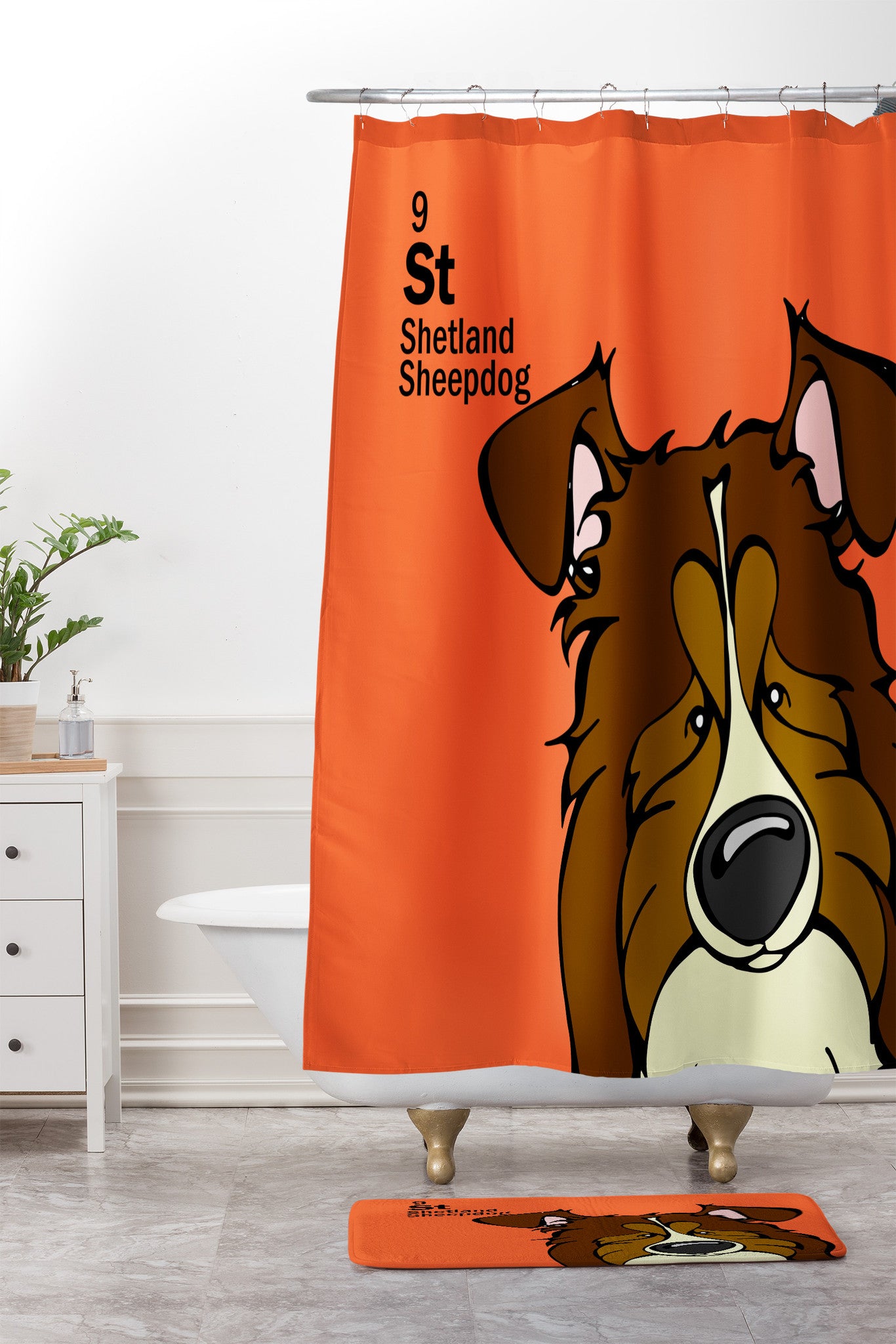 Angry Squirrel Studio Shetland Sheepdog 9 Shower Curtain And Mat