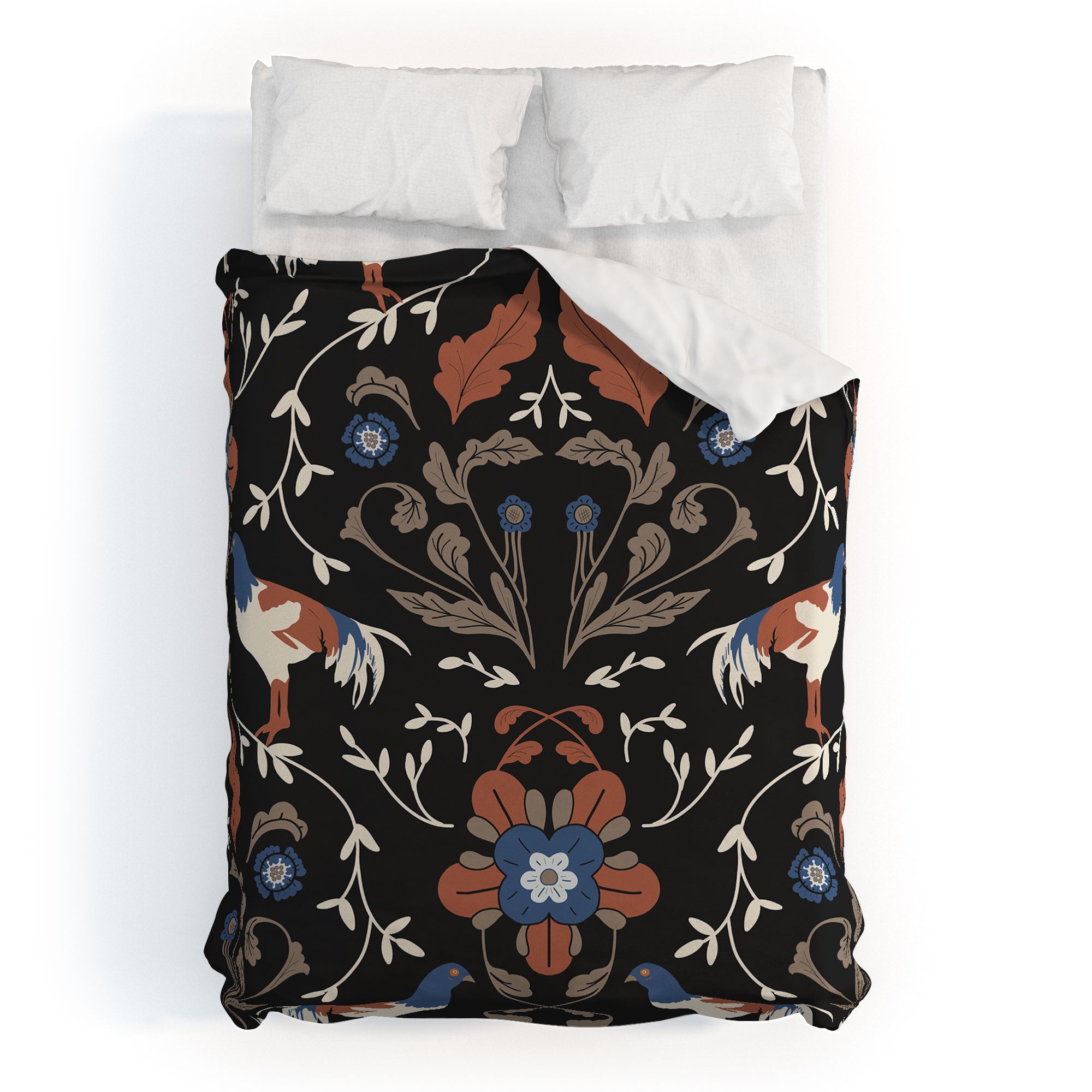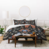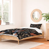 Anis Illustration Black Roosters Duvet Cover