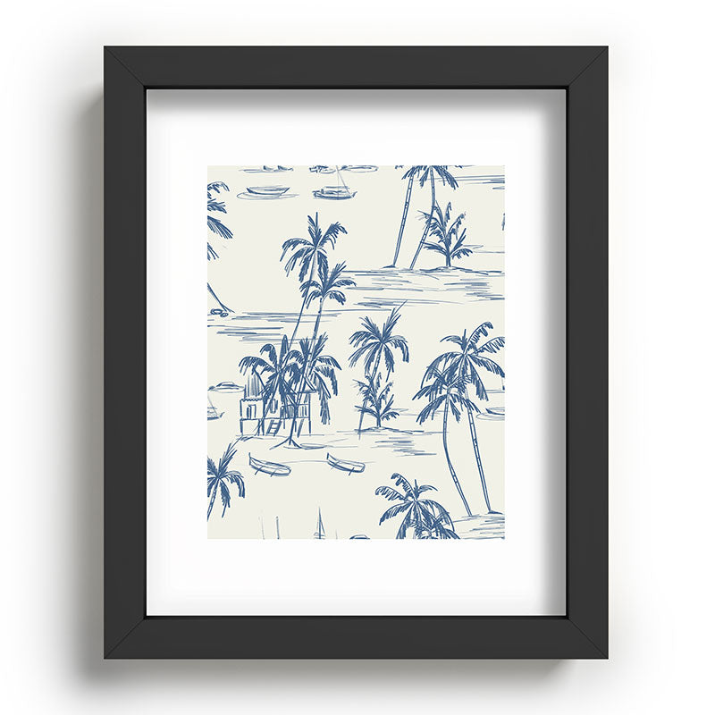Anis Illustration Blue Beach Pattern Recessed Framing Rectangle