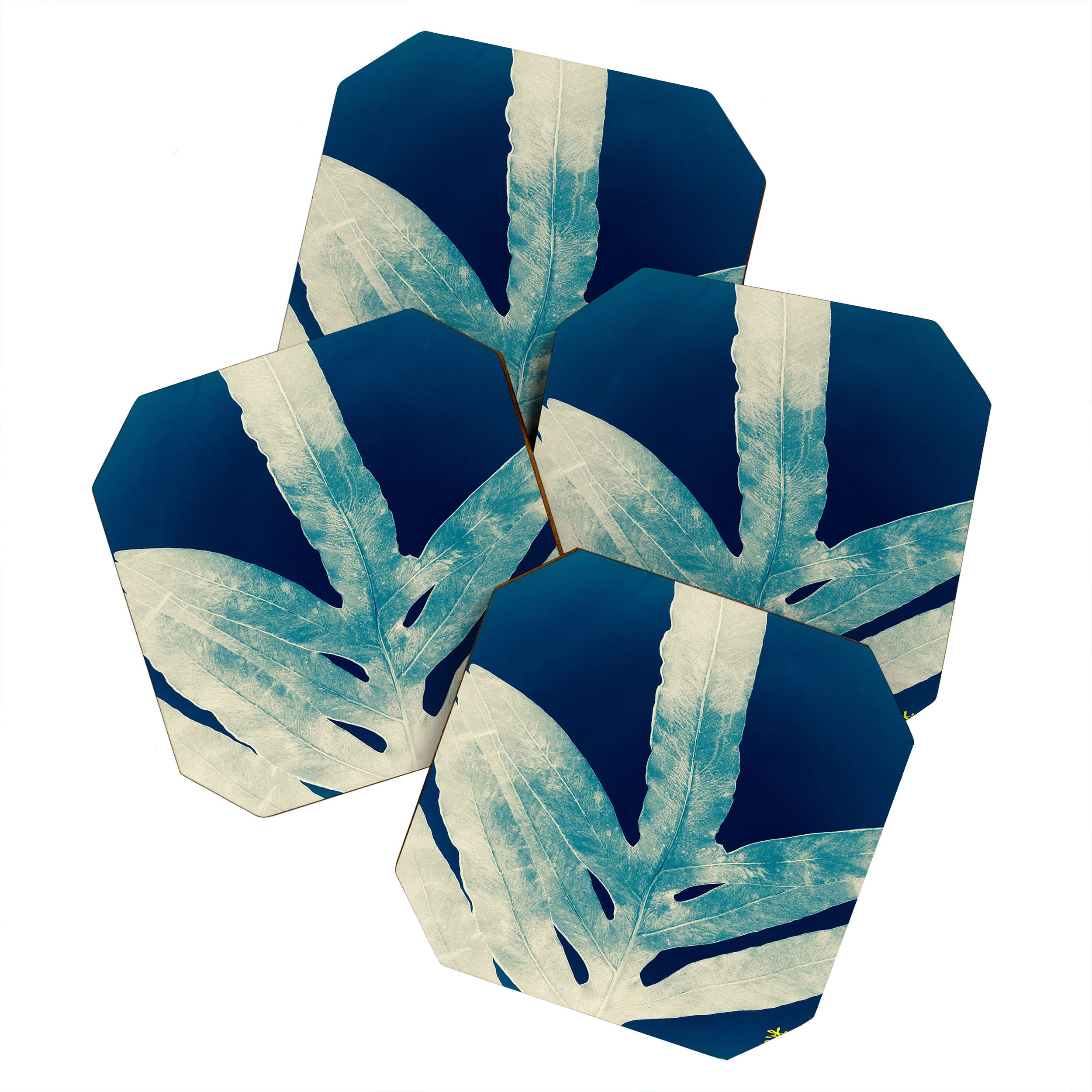 ANoelleJay Green Fern at Midnight Bright Navy Blue Coaster Set